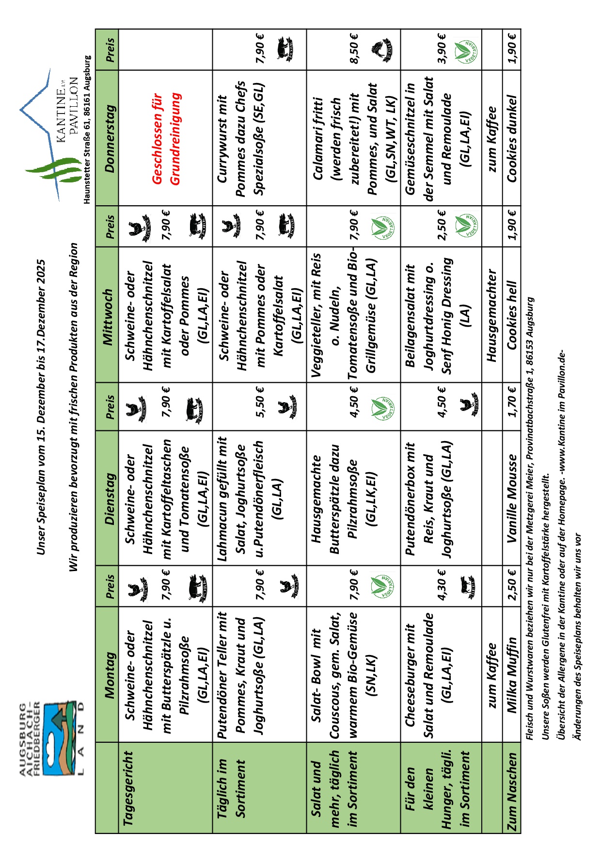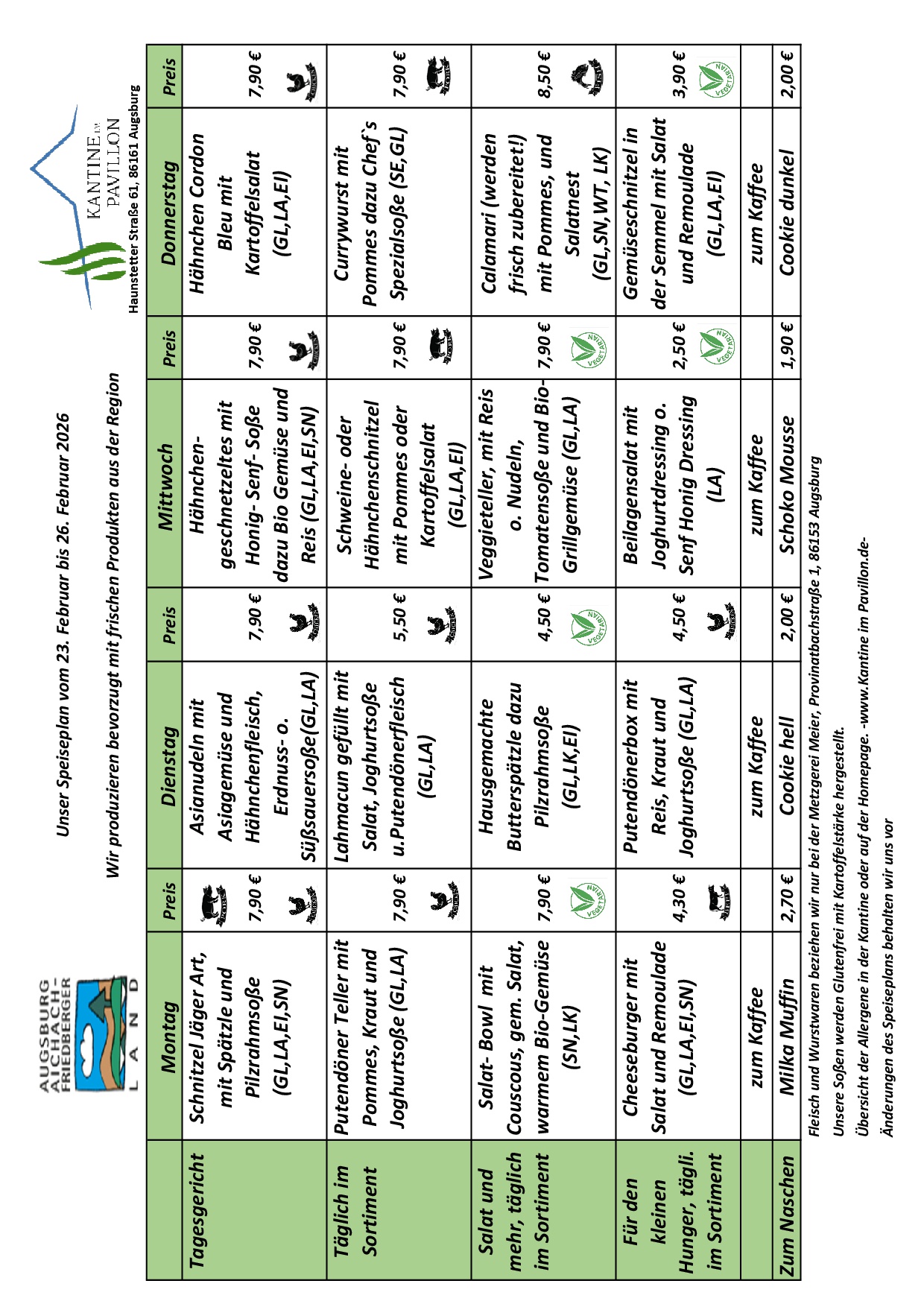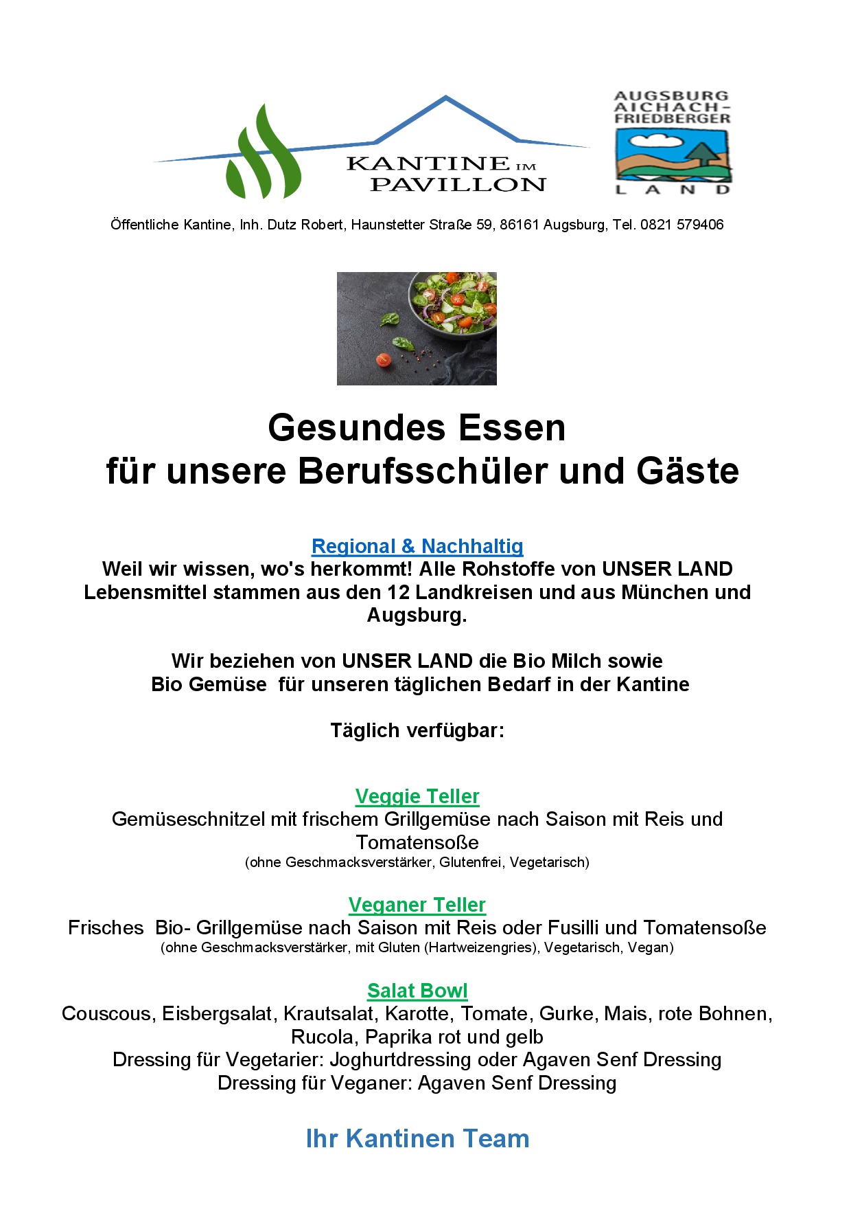 - Ob Berufsschüler oder Genießer, wir sind für jeden da - Die Kantine im Pavillon ist für jeden offen. Ob Sie Lehrer/Schüler an der Bebo-Wager-Berufsschule in Augsburg sind oder einfach eine gemütlichen Ort zum Mittagessen suchen, unsere Türen stehen jedermann offen. Bei uns ist die Bezahlung mit kontaktlosem Bezahlen, EC-Karte oder klassisch in bar möglich. Für alle, die es eilig haben, verpacken wir unsere Gerichte gern auch zum Mitnehmen.